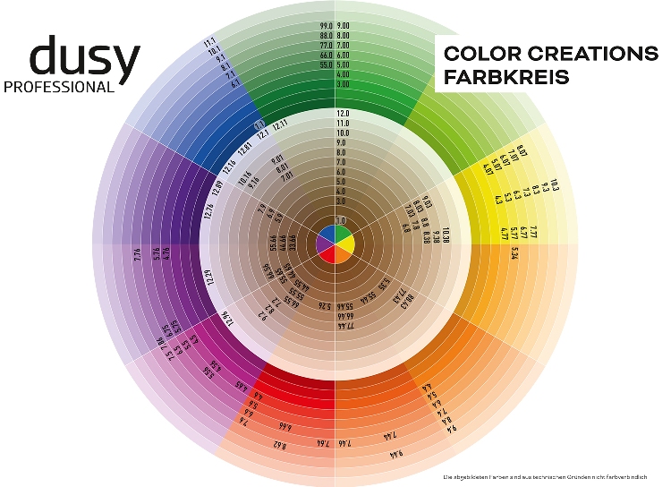 Mit der Farbtiefe wird in der Branche die Helligkeit einer Farbe bezeichnet. In der Farbkarte wird dieser Faktor senkrecht angeordnet und reicht meist von Hellblond bis Schwarz. Die Töne der Farbtiefe enthalten keine Nuancen und werden auch als Naturtöne bezeichnet. Die Farbrichtung beschreibt nun die Nuance einer Farbe. Diese ist waagerecht auf der Farbkarte hinterlegt. Nun müssen Farbtiefe und Farbrichtung zueinander gebracht werden. Das ist durch die Vielfalt an Haarfarbenherstellern gar nicht so einfach. Um ein System in die Komponenten zu bringen, haben die Hersteller ein Zahlen- bzw. Buchstabensystem entwickelt. Während die Farbtiefe eine Nummer erhält, die bei fast allen Herstellern nahezu gleich ist, sind die Bezeichnungen für die Farbrichtungen unterschiedlich. Meist vergeben die Firmen auch noch Namen für ihre Haarfarben. Daraus ergeben sich Farbkarten für jeden Hersteller.